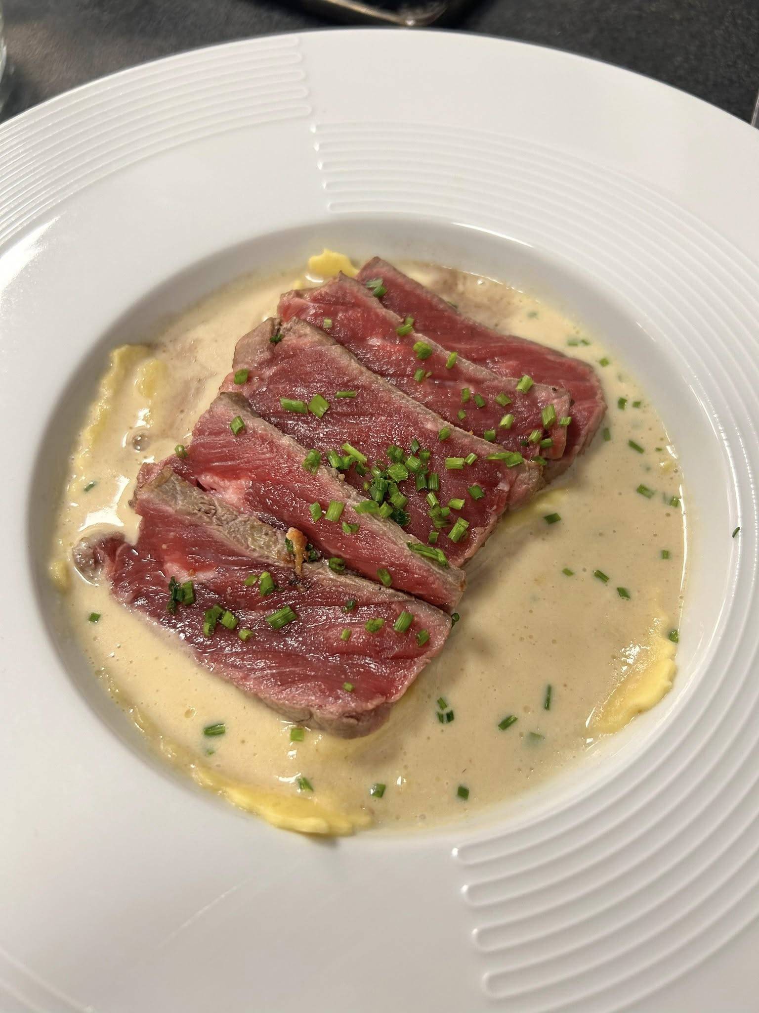 Ici, pas de carte figée : tout se décide chaque matin selon l’arrivage des producteurs locaux. Alexandre, enfant du marché, sélectionne les meilleurs produits frais pour composer la formule du jour en semaine et les menus du week-end. Chaque repas est une surprise gourmande où se glissent des incontournables de la région comme la quenelle de brochet, l’andouillette ou le gratin de ravioles. Que vous soyez amateur de viande, végétarien ou sujet à certaines intolérances, le restaurant Ballù s’adapte pour que chacun trouve son bonheur à table.